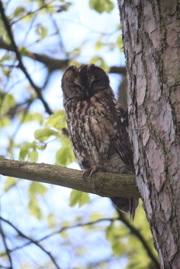 I’ve been back to “Owl Wood” the last few days to observe the owls. The day after seeing the two owlets there was only one in the same bush and the parent was perched on a different tree.