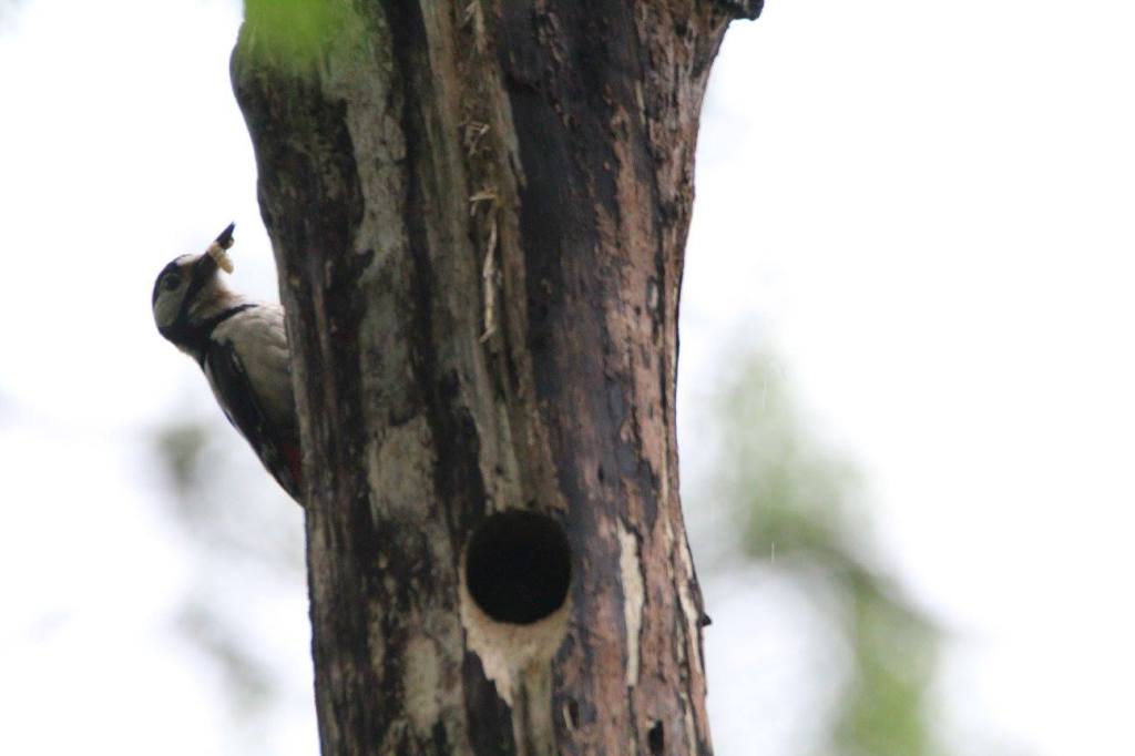 Keep an eye out for holes in old deadwood used by woodpeckers and any activity around them. You might get lucky as I did one year and see a young woodpecker peeking out to see if its next feed is coming! Apologies for the grainy photos – these were taken before I took a photography course.