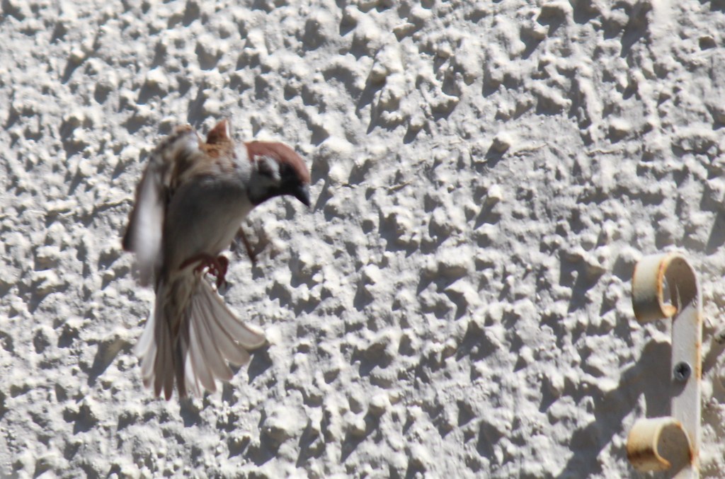 A sparrow tried to get into the vent and was met by a squawking tit who came out and fought him off …FIGHT!