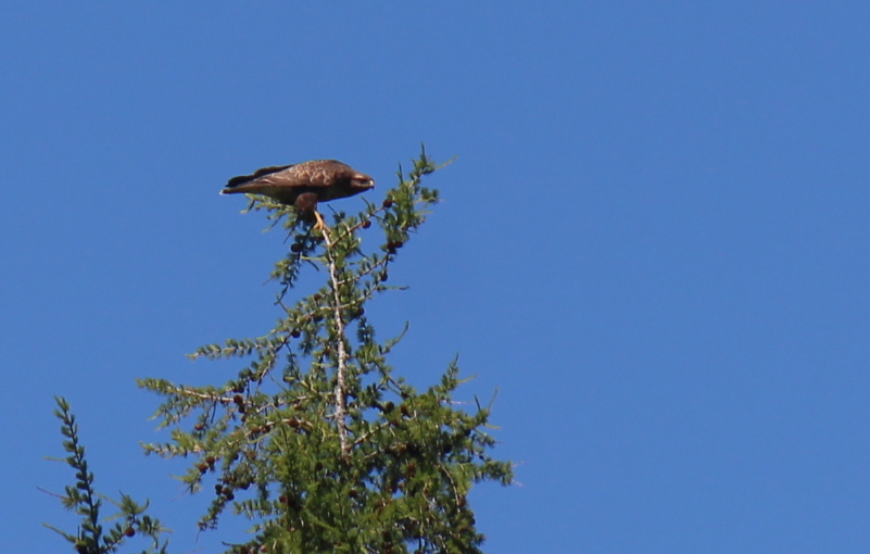 Here is Mum or Dad keeping watch from the tallest tree in the wood. Earlier in this blog. “Nesting Time” has a photo of the adult buzzard sitting on the nest.