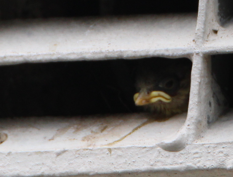 Today I could only see the one chick. It peeked out at me with its alien looking face.