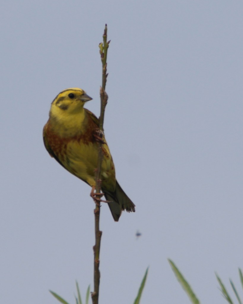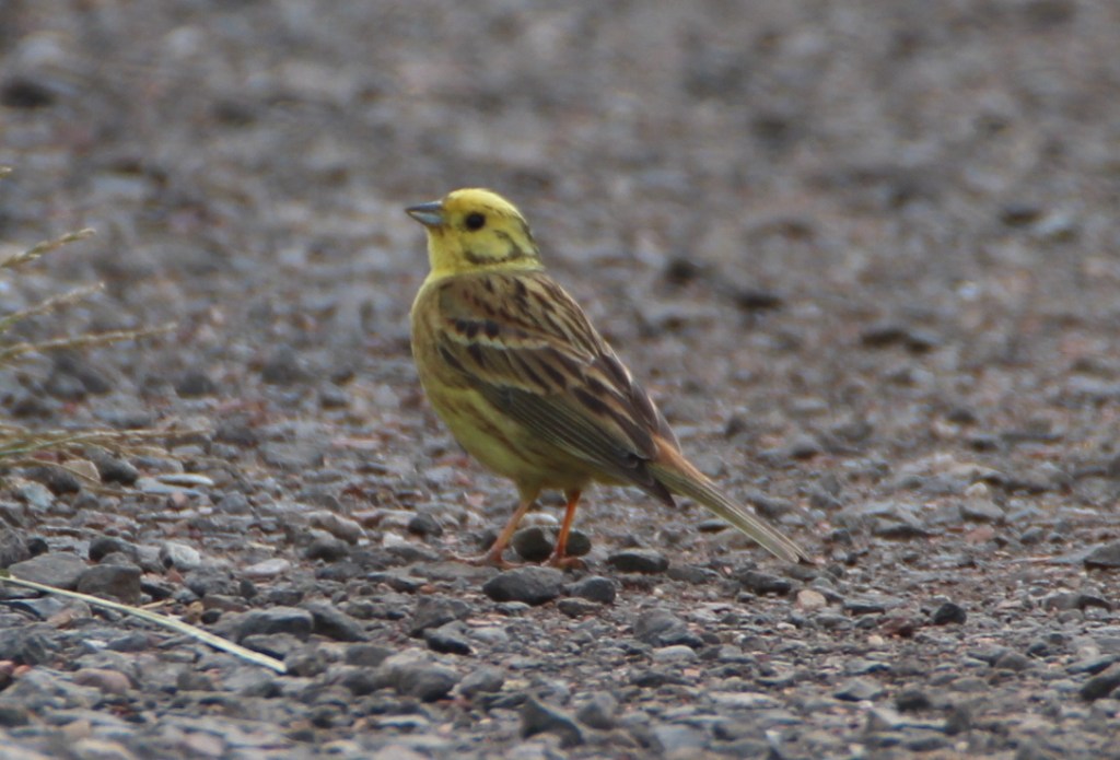 If you came across this bright yellow bird in a hedge you could be forgiven for thinking that someone’s budgie had escaped. You would not hear “Who’s a pretty boy then”, as this bird gets the reputation for cheeping “a little bit of bread and no chee…eese”. It is the yellowhammer and I’ve been hearing them but not seeing them clearly enough to photograph until recently. This one obliged by coming down onto the path in front of me.