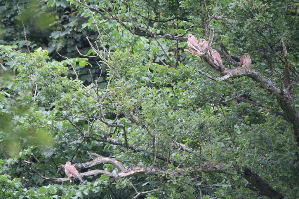 When I crept past the tree I was eye to eye with it, so close but not fast enough with pressing the shutter to get a super close up shot. However it flew into a nearby tree and I was lucky enough to see the whole kestrel family perched in branches there. Five kestrels in one go …not bad!