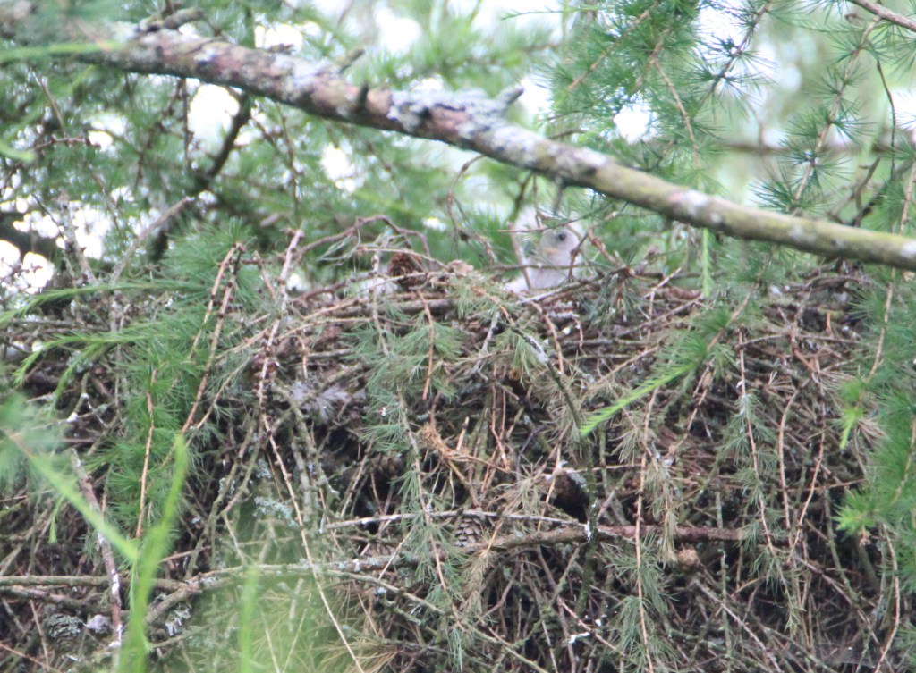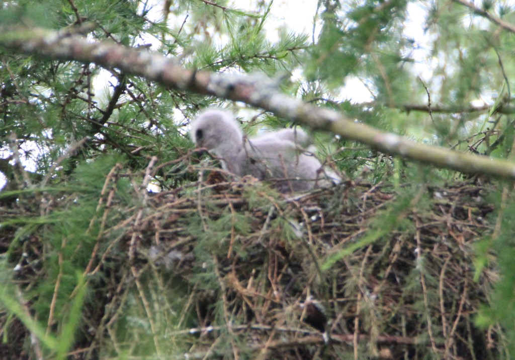 It has been almost six weeks since I first spotted the buzzard chicks. Here’s a reminder of how they looked all these weeks ago, alien looking bundles of white fluff.