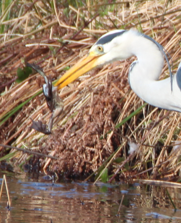 I rarely see them actually catch anything, but then I don’t have the patience of a heron to stand and wait like they do. This spring I watched one up at a nearby pond and saw it struggling to swallow an unfortunate frog whole.