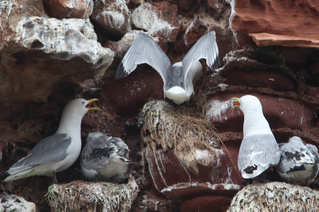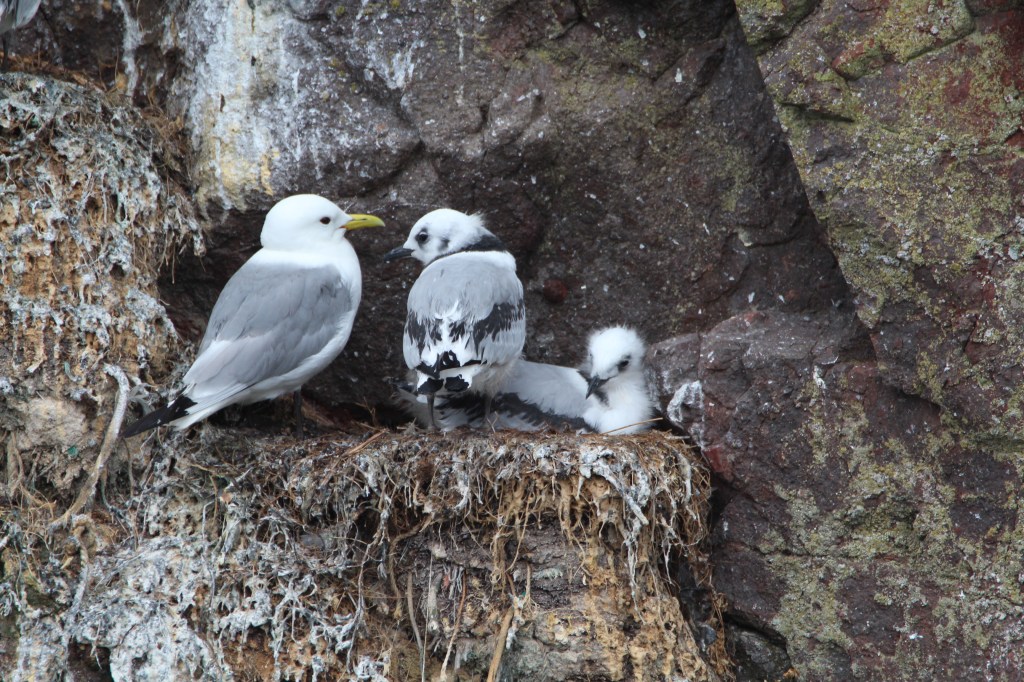 Kittiwakes get their name from the distinctive call they make to each other when nesting close together, “kit-ee-wake, kit-ee-wake”.
