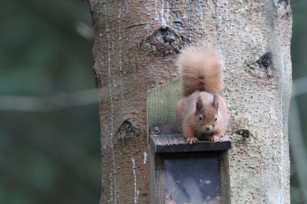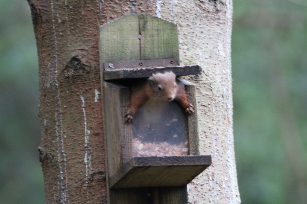 I went up to the wildlife hide at David Marshall Lodge today to see if I could photograph some red squirrels for a “Bright Eyed and Bushy Tales Part 2” blog. However all the feeders were empty and there were no red squirrels to be seen. The only wildlife to be seen were some birds around a bird table with peanuts on it and a pair of bonny wee bank voles popping in and out of holes in a bank and at the base of a tree. Here is a nut hatch.