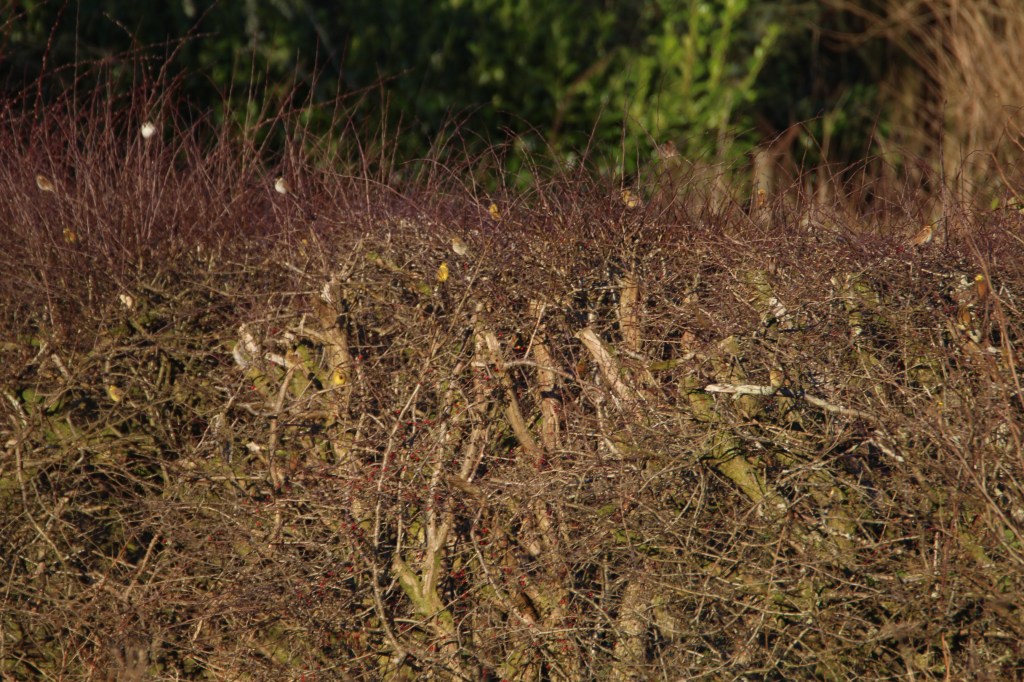 There is a wooded hedge which cuts between two fields where I’ve been seeing huge flocks of chaffinches mixed with reed buntings and yellowhammers. If they hear or see me coming they take off in sync. with a loud whoosh.