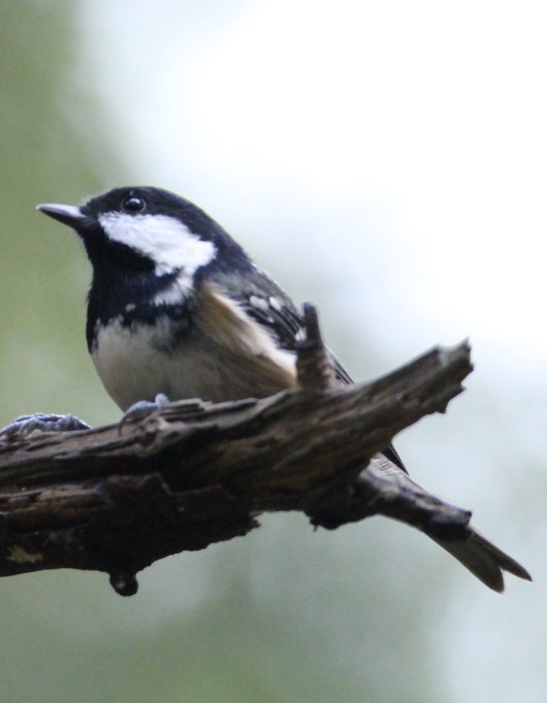 The smallest member of the tit family is the coal tit. It is a wee characterful bird with a creamy coloured chest and black head and throat. They often frequent the nut feeder in gardens too.