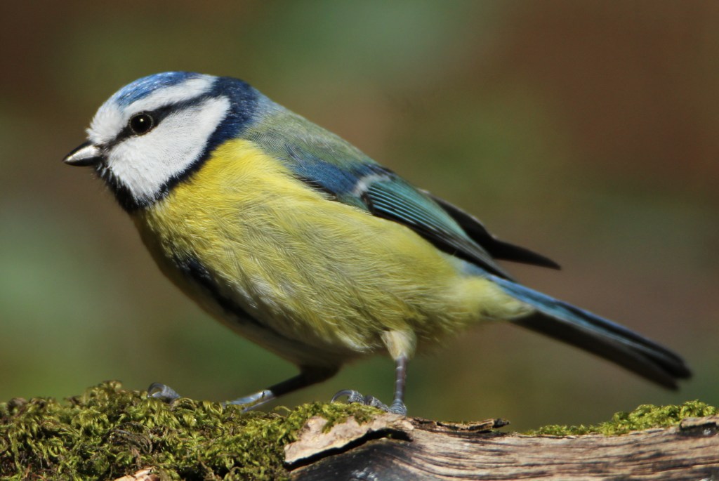 The blue tit is smaller and has more blue on its head and wings. It can have a bit of a black stripe on its chest but this is not as marked as on the great tit. It has a quieter sweeter chirruppy song.