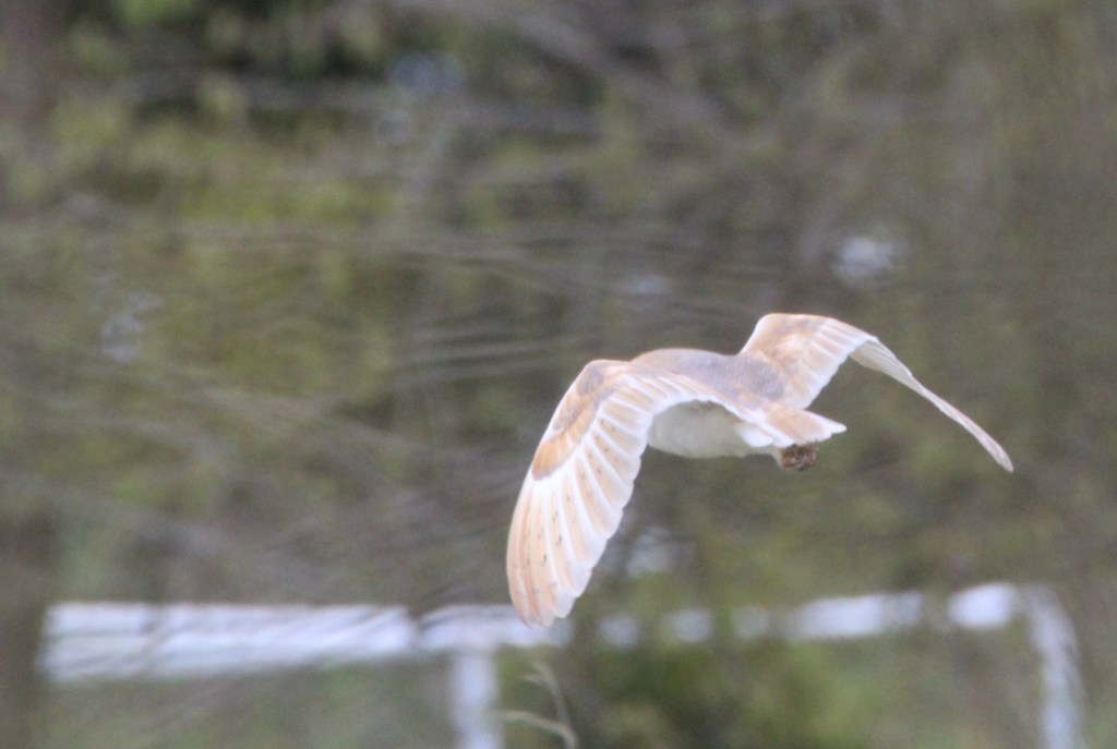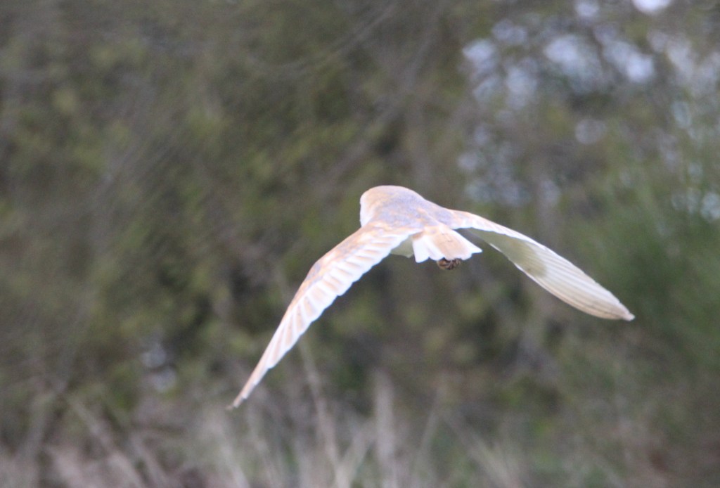 The only other time I’ve seen barn owls in flight is in the distance at dusk when they have been mostly a whitish silhouette. It was thrilling to get a close up of its sandy coloured, speckled back feathers.