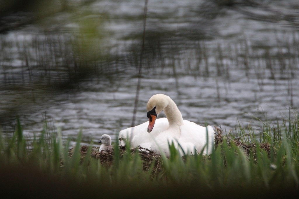 A few weeks ago I spotted the first cygnet for our local swan pair. The pair had been sitting on the nest for about six weeks and it was on a rainy afternoon that I saw one peeking out, whilst its siblings either hadn’t yet hatched or they were keeping tucked in, sheltered from the rain.
