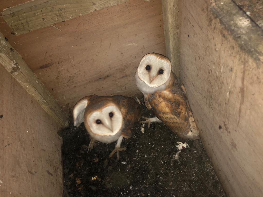 Two months later our friend popped up the ladder again for another photo and this is what he saw, two very healthy looking barn owlets.