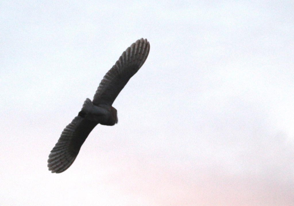 This one swivelled its head round to look at me before heading off westwards over the fields to hunt under the pink evening glow.