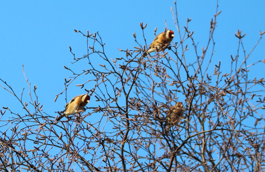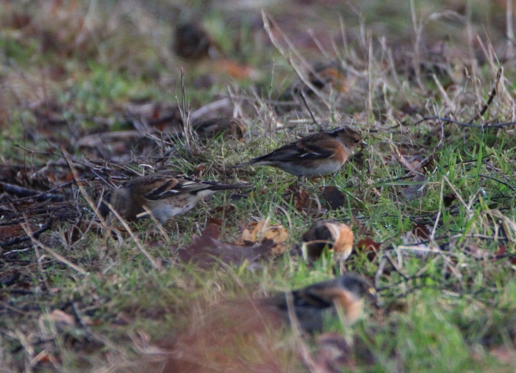 At first I felt a bit dispirited as the woodland seemed to be quite empty, only the occasional distant tweet way up in a tree. But then I heard the musical notes of goldfinches and I followed along to where I heard them. Then I saw some flocks of birds flitting down from small beech saplings onto the ground. I wondered if they were bramblings or if this was just wishful thinking and I was mistaking chaffinches for them. This is where getting some photos of them helps identify them back home. They were indeed bramblings.