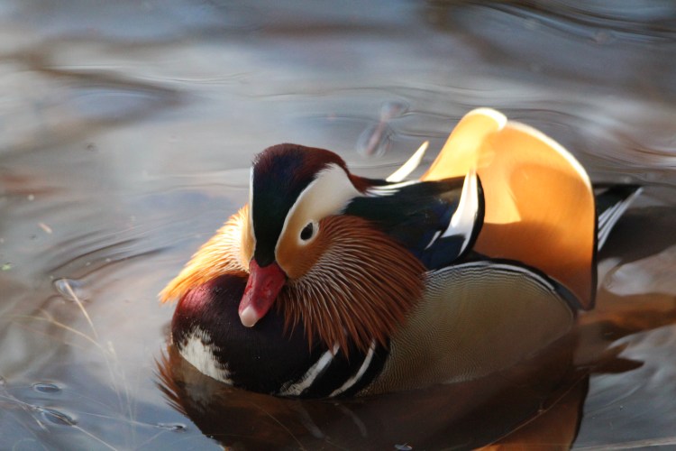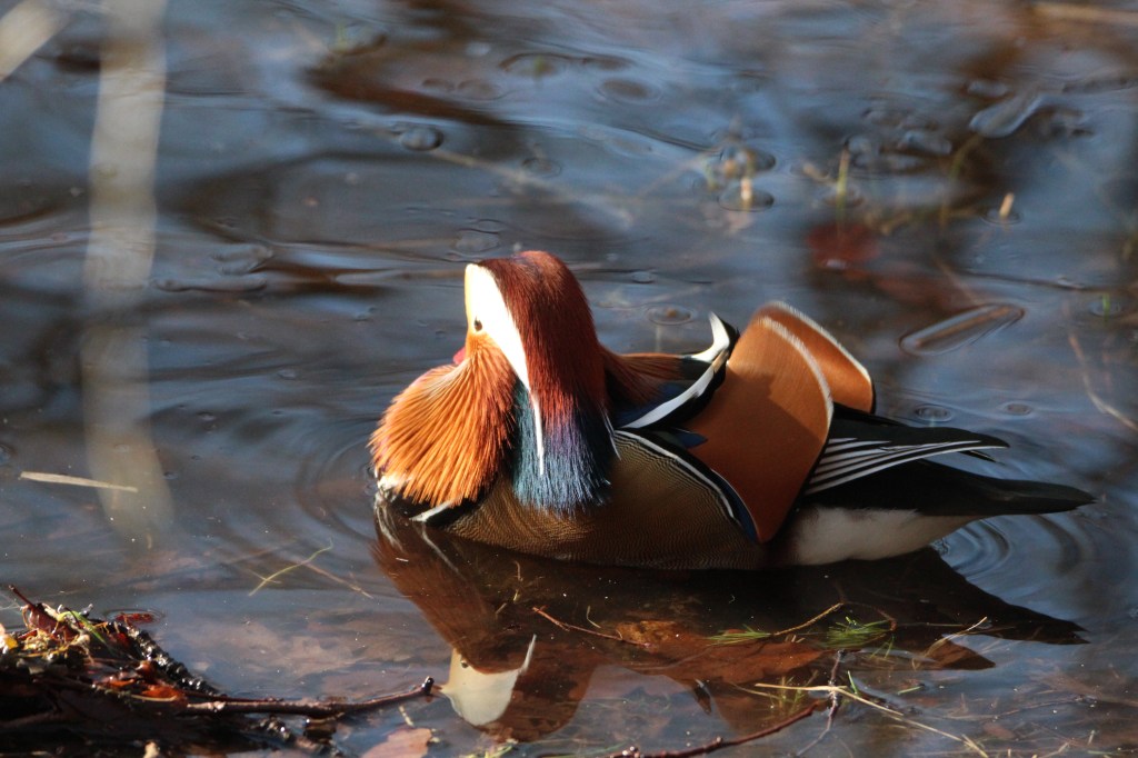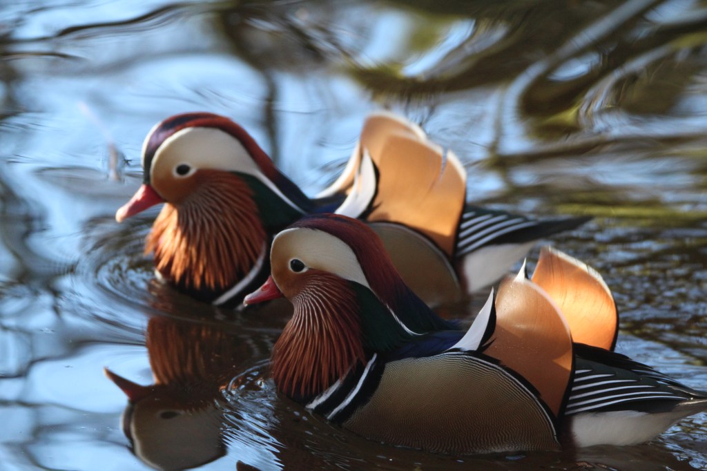 The male mandarins are like beautiful works of art. They raise and splay out their amazing head tufts during courtship displays. Now that would be a sight worth seeing!