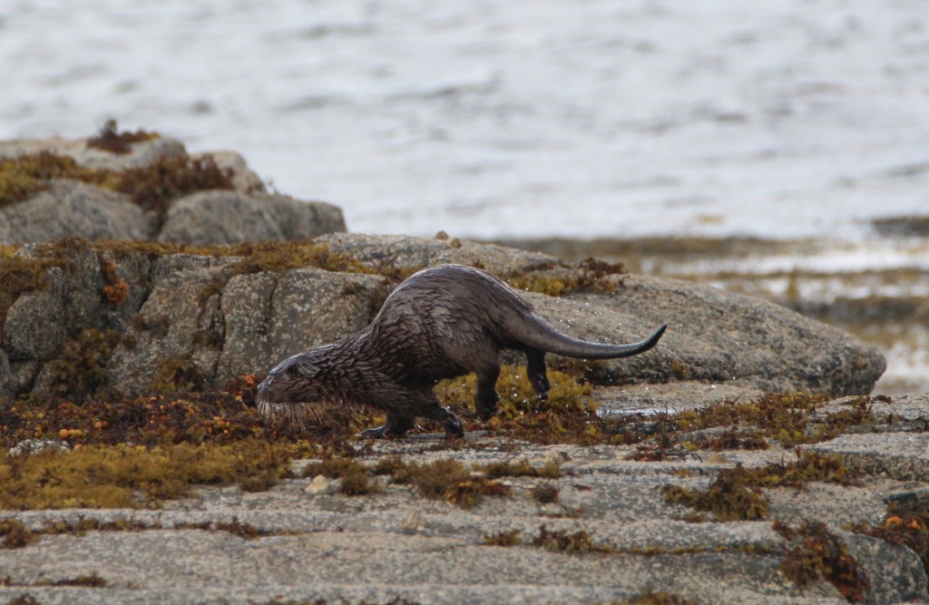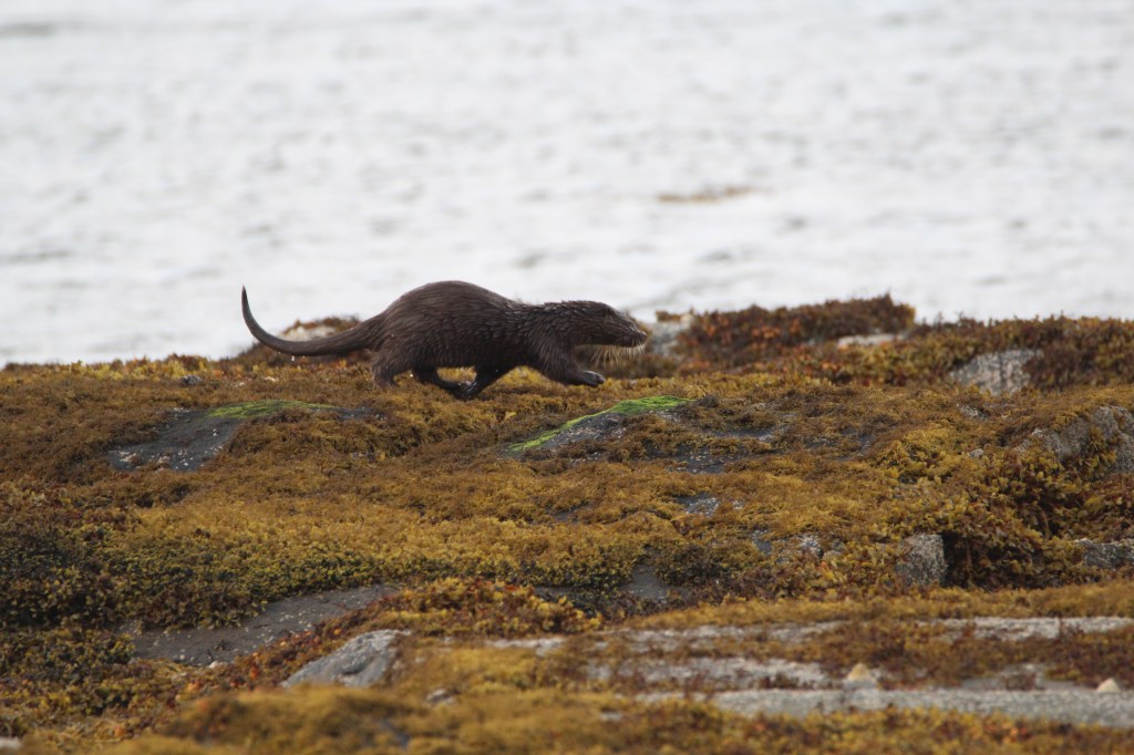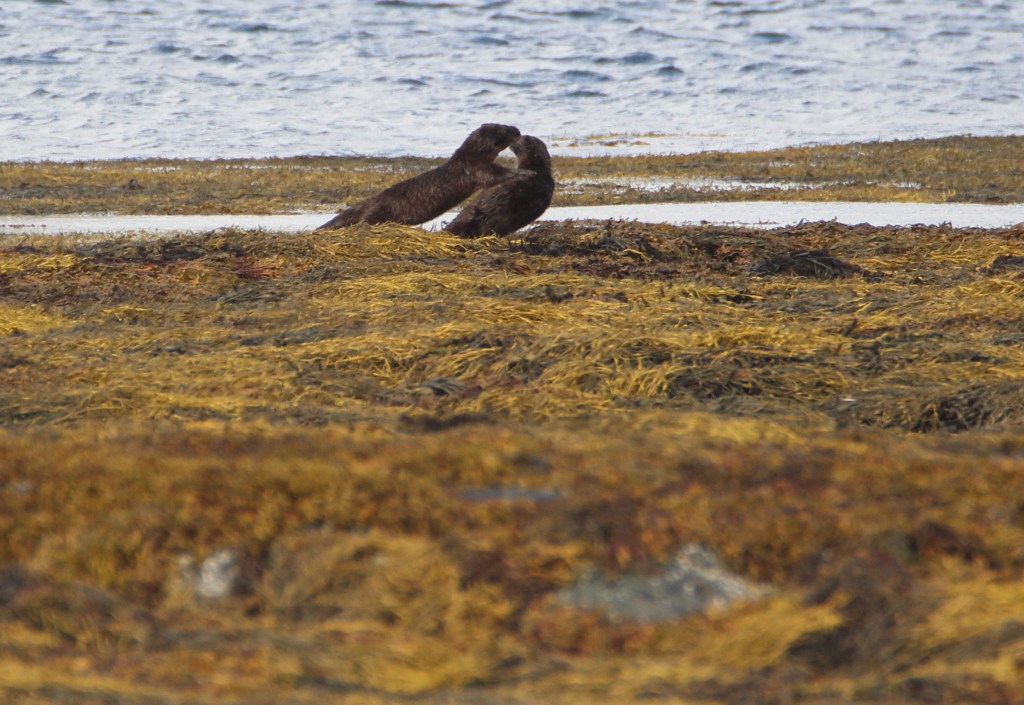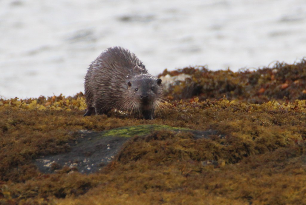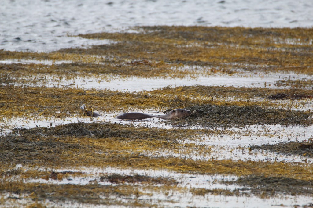 My good fortune continued the very next day at a popular otter watching spot by Loch na Keal. It helped that there were three other “otter spotters” already pointing their lenses towards the kelp covered rocks. I watched for moving dark shapes and took aim with my big lens too.