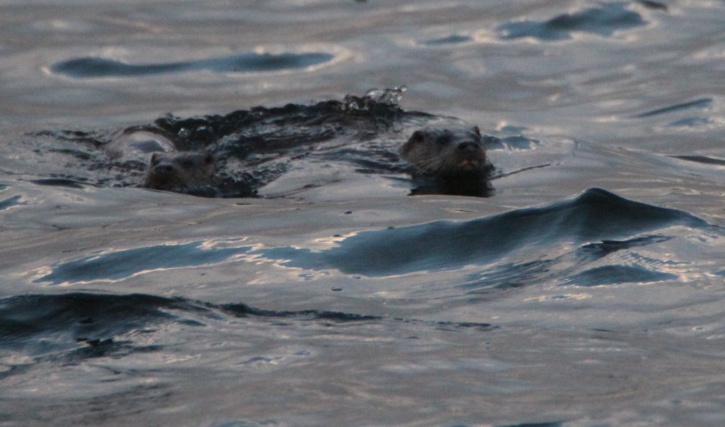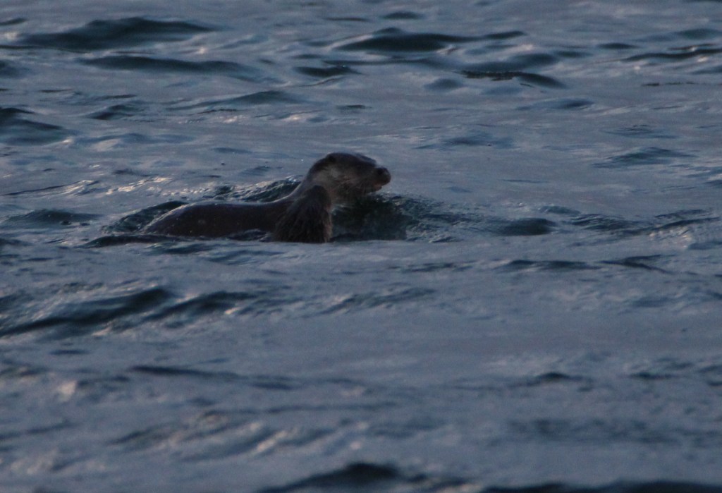 I’ve been hunting otters all year, first with early morning walks down the River Tyne in Haddington, then keeping an eye out on North Uist, earlier this summer. But I had no luck, that is until a trip to the Isle of Mull! We were told on arrival at our seaside campsite that there was a mum and two kits around. So we took a wander right along the shoreline with our eyes peeled. No joy. But on returning to our campervan my husband and now designated “chief otter spotter” asked, “Is that a couple of ducks out on the water?” No, it was two otters, playing and catching fish in the early evening light.