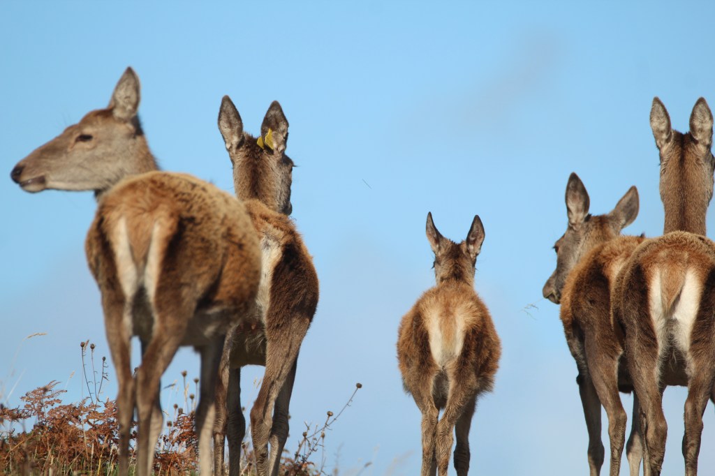 We got close to a group of hinds, this one was photographed through a fence. It was part of a group that retreated when they saw me with the camera poking through.