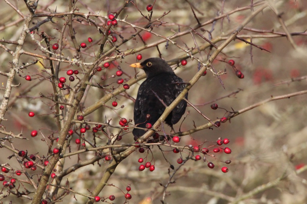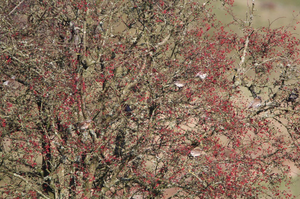 See how many fieldfares you can spot in amongst this hawthorn bush.