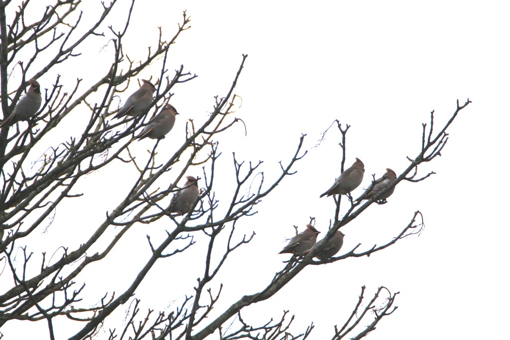 It’s just as well there was a big fence between us and the garden, goodness knows what the home owner would have made of all the big lenses pointing in towards the tree. All were pointed upwards as soon as we saw waxwings swoop down for a feed.
