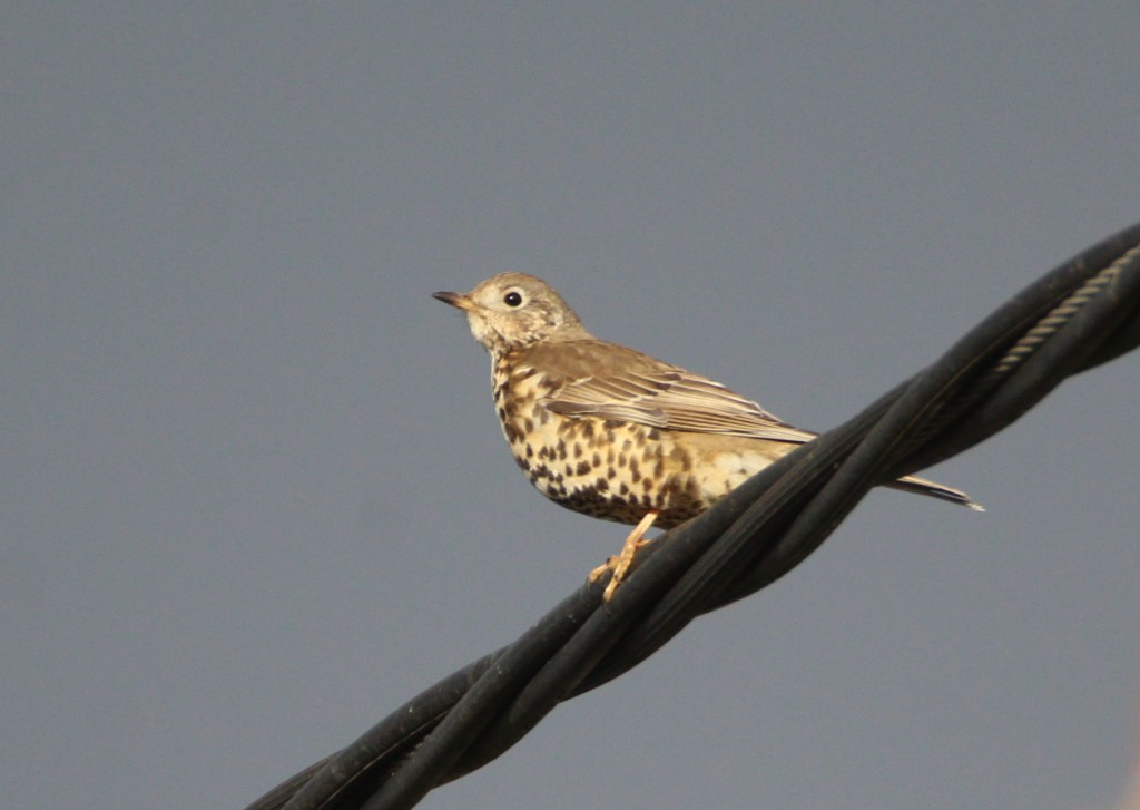 Meanwhile nearby a pair of mistle thrushes were watching on anxiously. From time to time one would come and defend its patch vociferously, sometimes chasing away the waxwings despite being outnumbered.