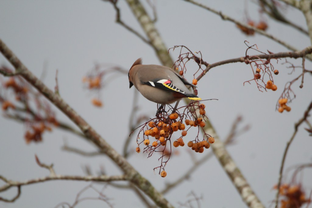 This year their numbers are low across Britain so it’s quite something to see them. They are mostly found near the East coast, hotspots in Scotland being the Moray Firth. This year a group of 30 or more in Sighthill, Edinburgh featured on BBC’s “Winterwatch”. I had just started following a site on facebook called “Waxwing Locations UK” when I saw they had been spotted in Torrance, 10 minutes drive from home. So I went along for a look this morning and there they were!
