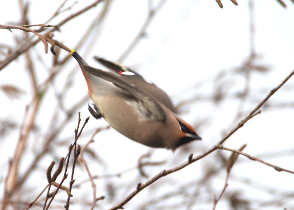Waxwings are winter visitors from Russia or Scandinavia and are a rare treat for birdwatchers. I’ve only seen a flock of 9 of them once before, 6 years ago and during an “irruption” when hundreds came over to UK because their own stocks of berries back home were so low.