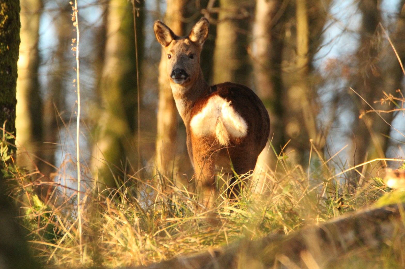 The “golden hour” for nature watchers and photographers is the hour at the beginning or end of the day just after sunrise or just before sunset. Then the light is low and takes on a magical golden quality. Here are some photographs taken this winter at both ends of the day. Below is a brown hare sitting upright, all senses on high alert.