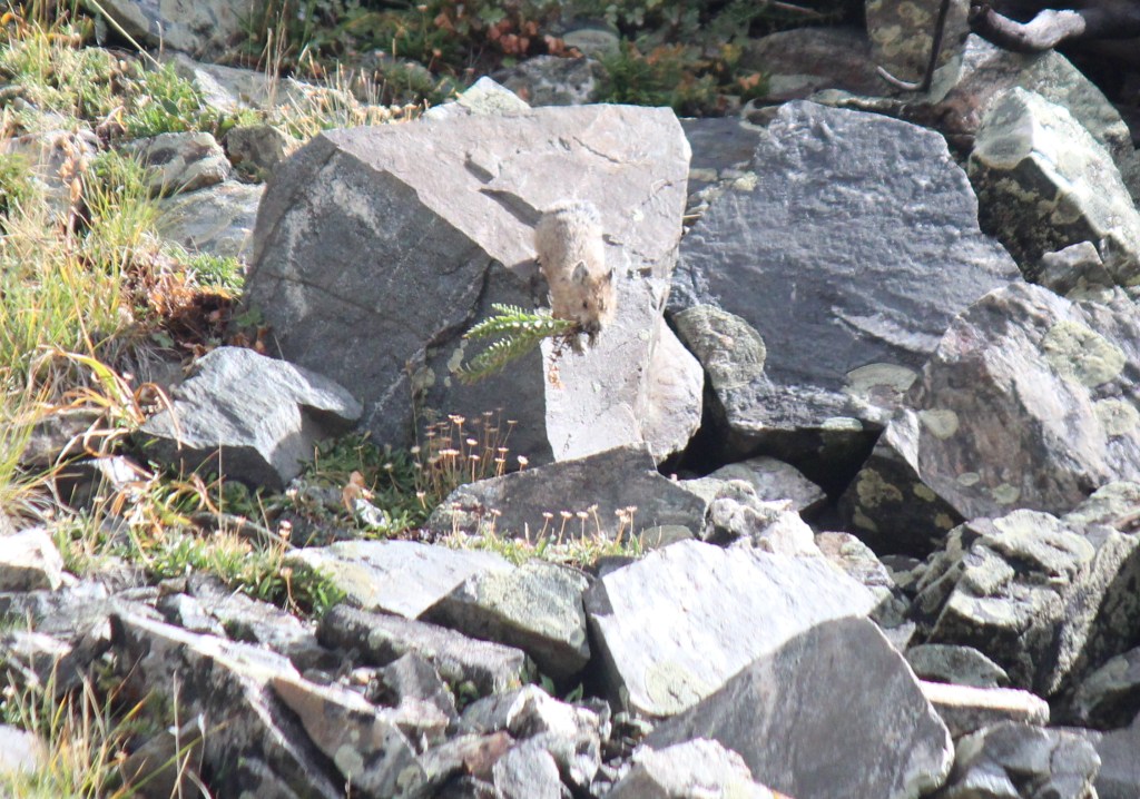 Then high up the mountainsides, scurrying over loose rock fields were picas. They are the size and shape of guinea pigs but with mouse like ears.