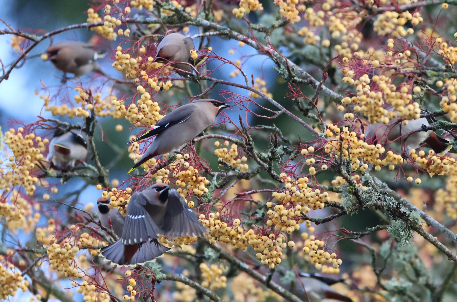 They would sit perched in a tree close to the berries but when a train went in or out of Dunblane station they would take to the sky in a huge flock and fly around trilling before settling down again.