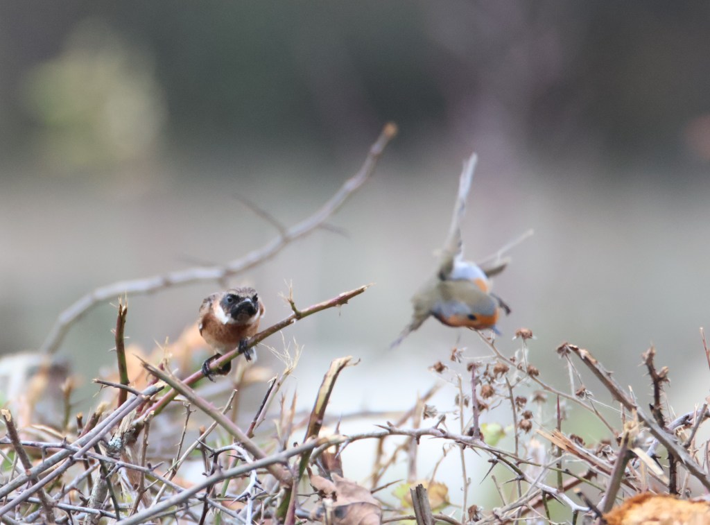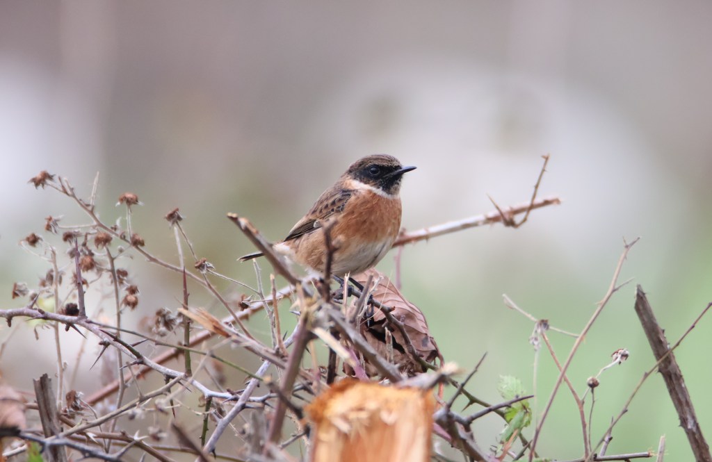 Stonechats are bonny wee birds which I often see on rough moorland. I caught this one chasing off a robin!