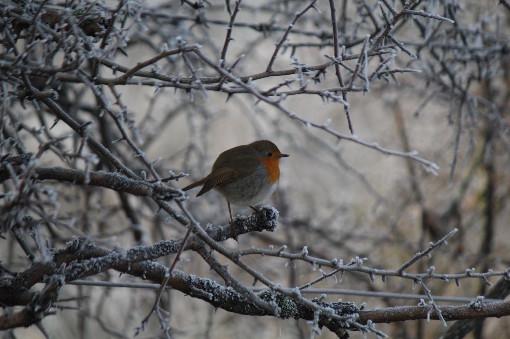 I think this one sitting in frosty branches may be a contender for next year’s calendar. It’s very puffed up, trying to keep warm in the sub zero temperatures.