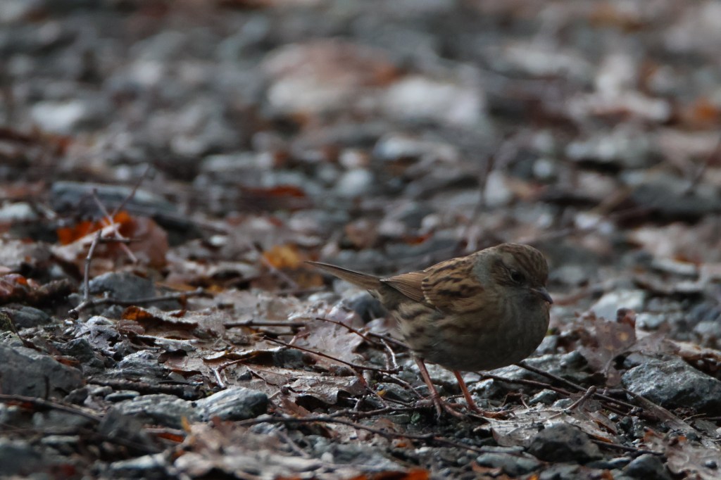 On the ground was this dunnock, blending in with the browns of the leaf litter. They are a plain looking little bird but have a very sweet song.