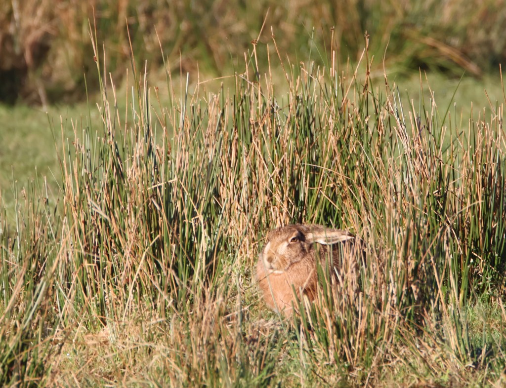 Hares are a favourite of mine too. They have been hiding from me a bit lately, but I managed to find this one, tucked up in some grassy tussocks. It was keeping a very low profile, wise when there was a buzzard flying overhead.