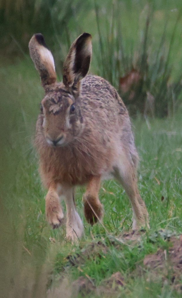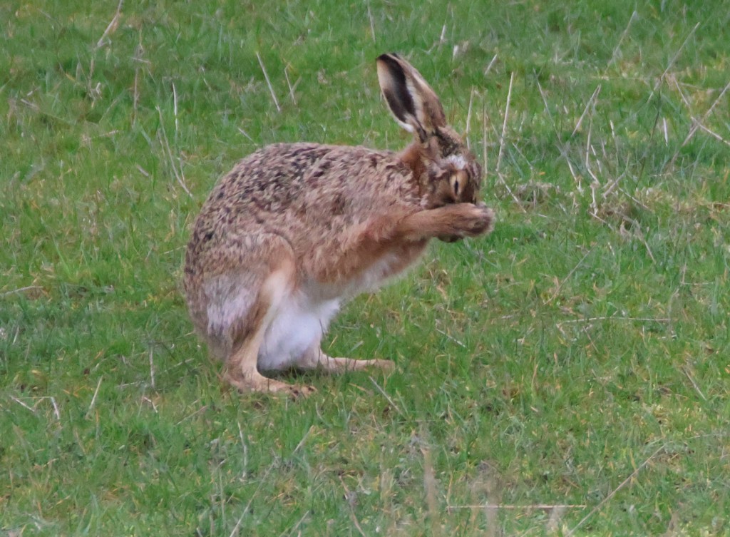 It was another grey Spring afternoon but finding a field with at least four or five hares in it brightened my day today. I had great fun watching their antics. Here’s one that came bounding past me.