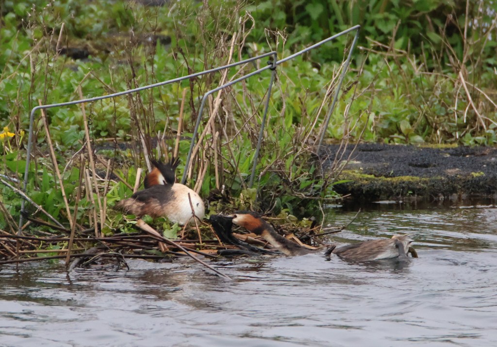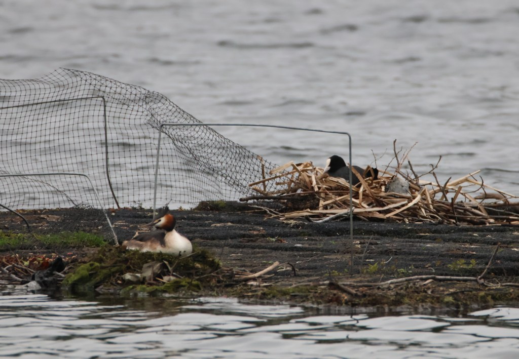 Hogganfield Loch just outside Glasgow has man made nesting platforms which the Great Crested Grebes make use of.