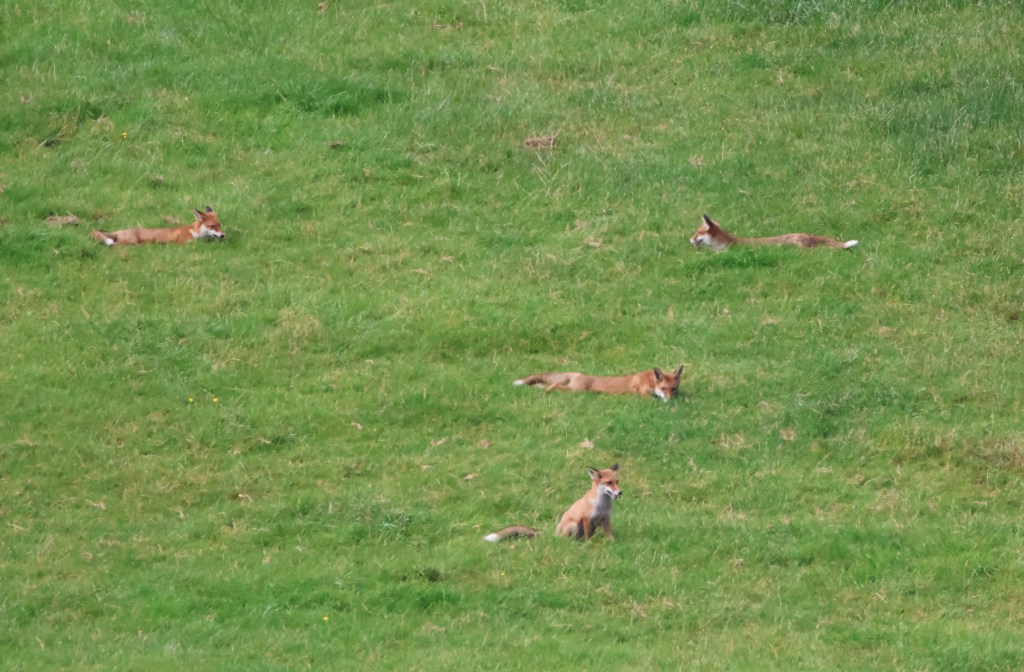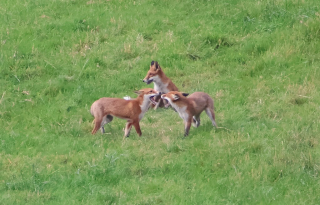 Up until this summer I had never seen any fox cubs ever. Then in France we were lucky to spot three playing. We watched them through binoculars then. It was a thrill to see their Mum turn up and them suckling from her before she shepherded them away into thicket.
