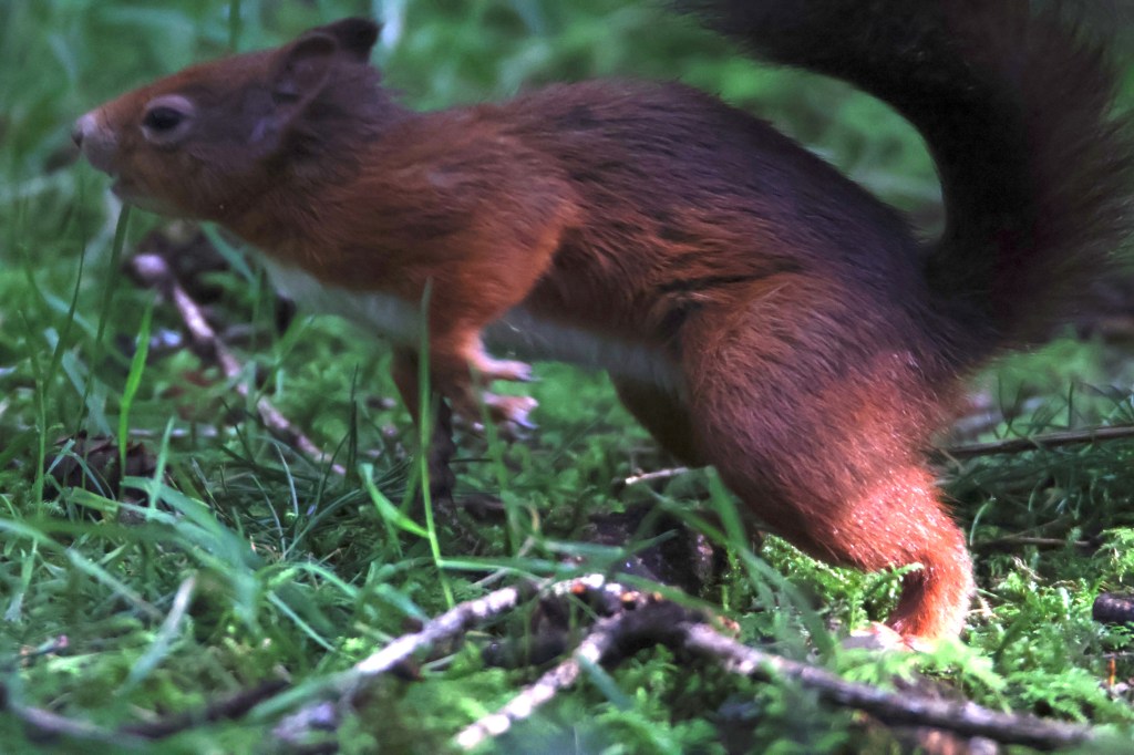 Reds are smaller than grey squirrels but no less agile. This one was hard to photograph when on the move.