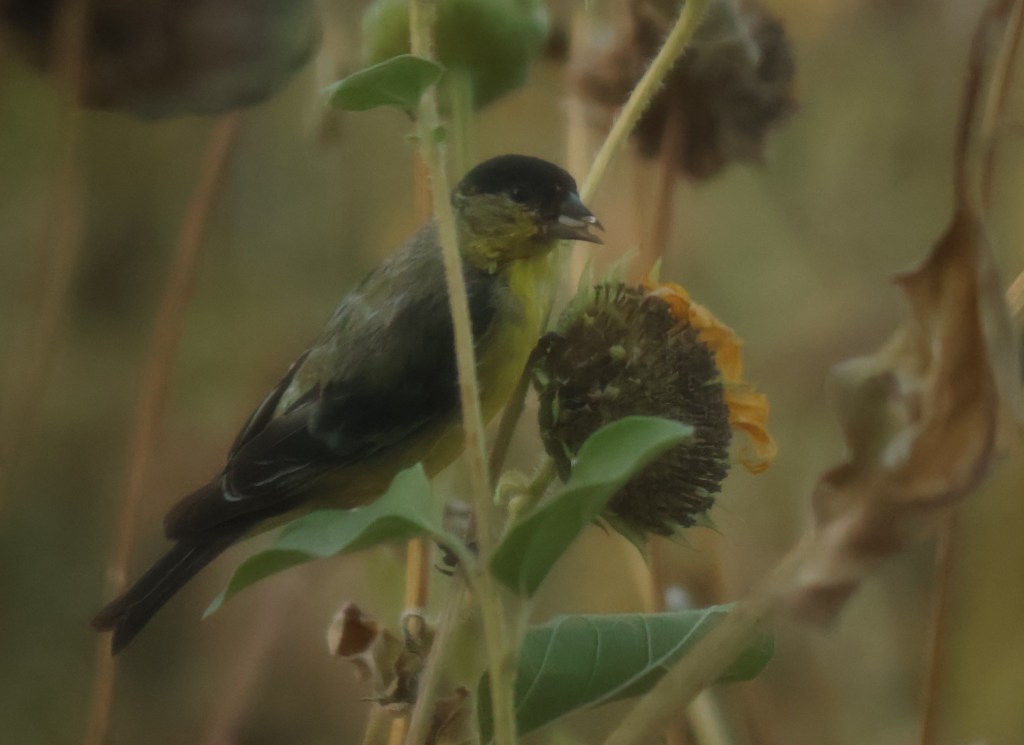 I could be wrong but, having looked up my “Birds of North America” field guide, I think this may be a lesser goldfinch below. Nothing like our goldfinches in the UK!