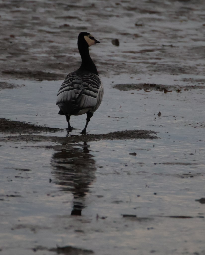 There were also some barnacle geese at Aberlady Bay. Here is one plodging over the marsh.
