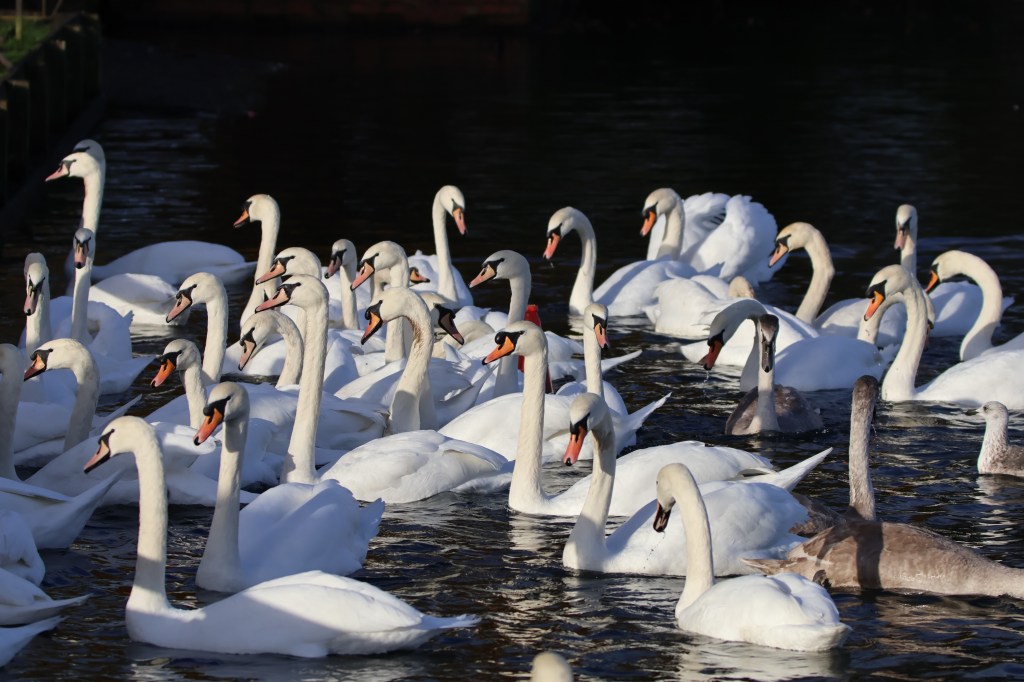These mute swans were gathering at a lochside waiting for people to throw them some bread and seeds. The bread is not so good for them but they’ll take what they can get.