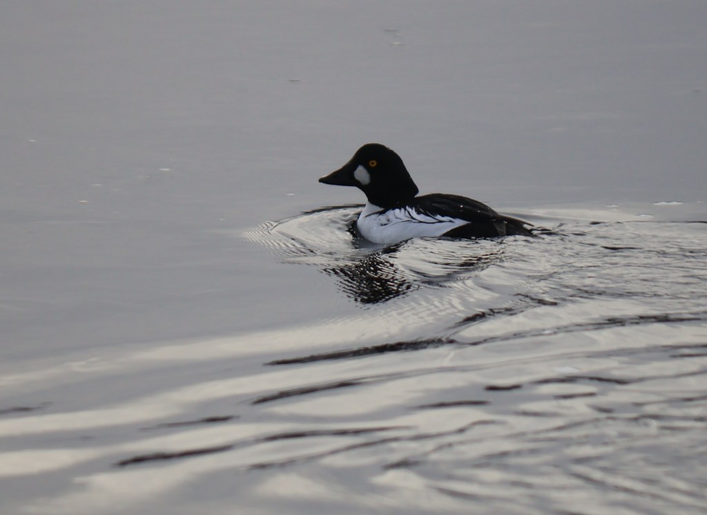 This pair of mallards added a touch of colour to a black and white frosty day. While below the golden eye duck didn’t mind the cold water.