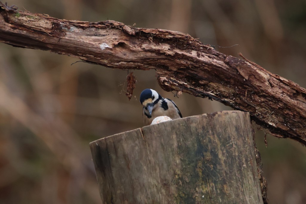Then it made flew down and made its way up the log in front of the hide, but alas what should have been great shots of it turned out blurry.