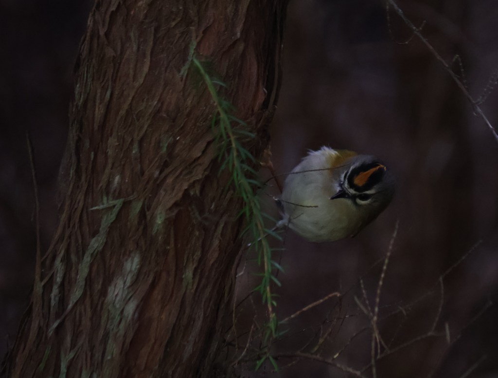 For comparison, here is a photo of our UK goldgcrest compared to the Madeiran firecrest. Spot the differences! (NB the first photo is a more accurate actual size of a kinglet – about 9cm long. The second photo makes it look larger than it is.)