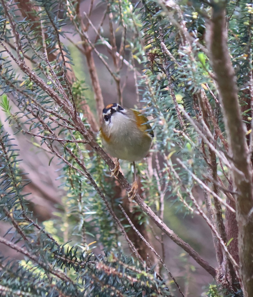 Madeiran firecrests are tiny endemic island birds which in 2003 were found to be a separate species from common firecrests. They are members of the kinglet family. In the UK our goldcrests are our smallest birds, but firecrests are even smaller, weighing only 5 grams. You can see why they get their name. In the breeding season they raise their crests to attract a mate.