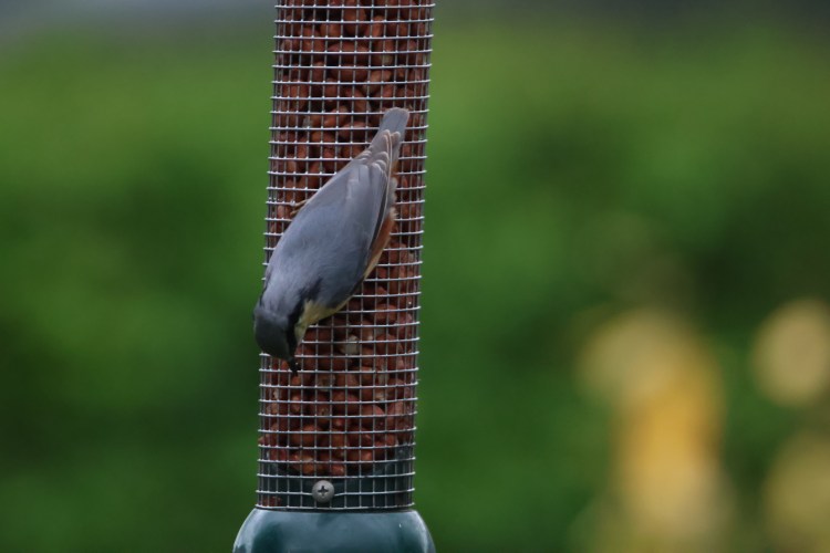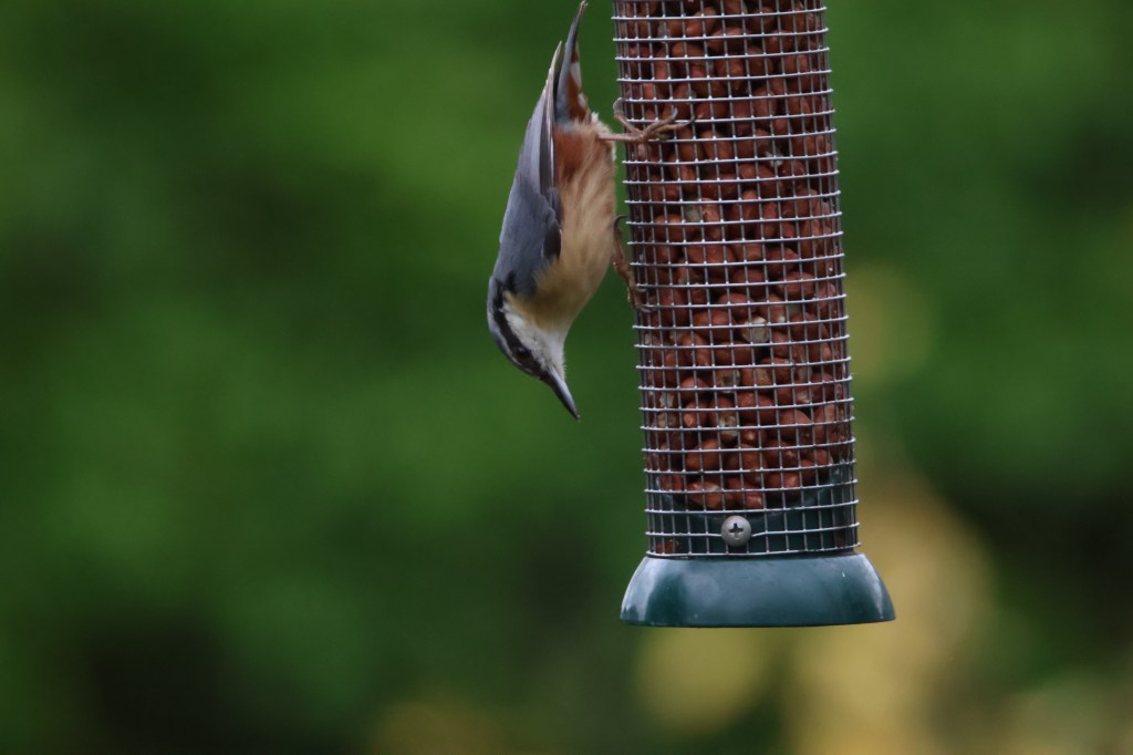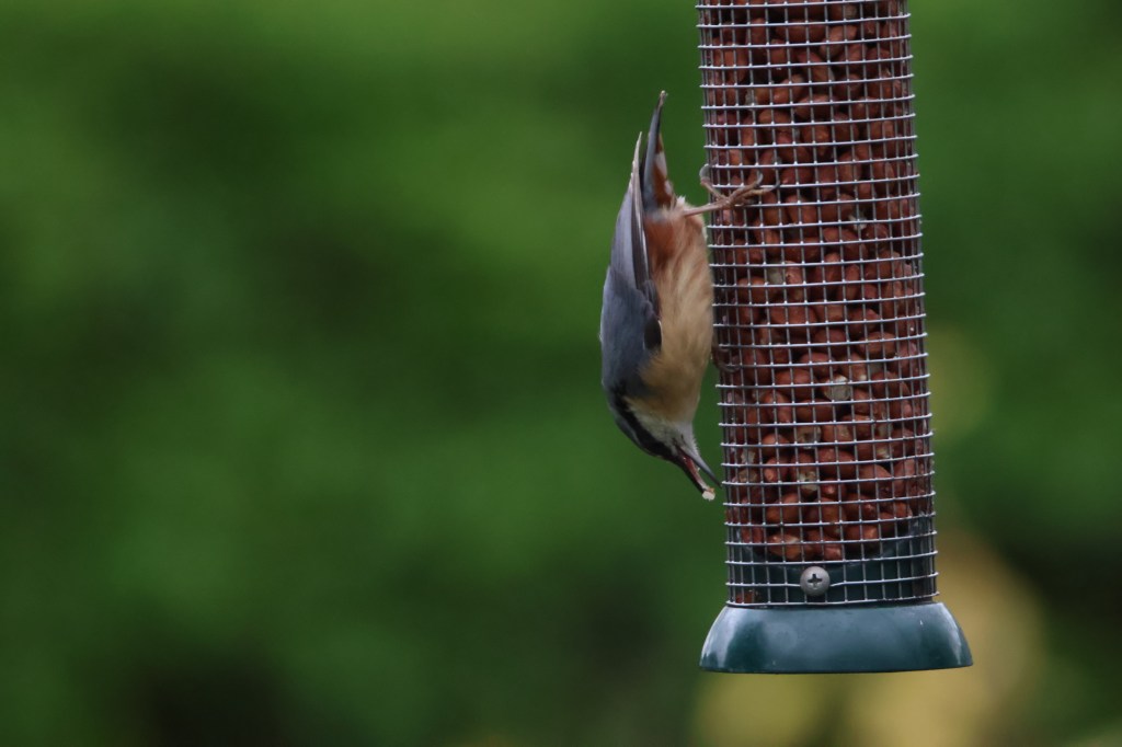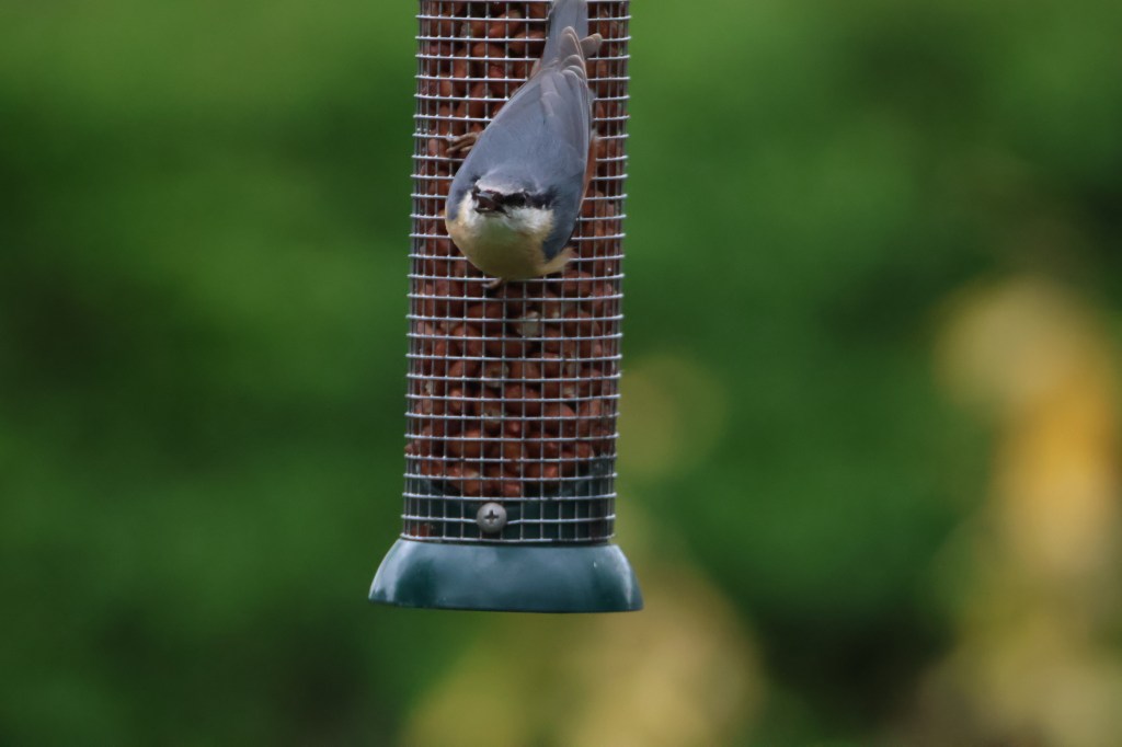 Nesting and breeding is hungry work so there are still birds taking advantage of the peanut feeder in my garden. A new visitor this year is the nuthatch, which spends most of its time upside down, whether on tree trunks or bird feeders.