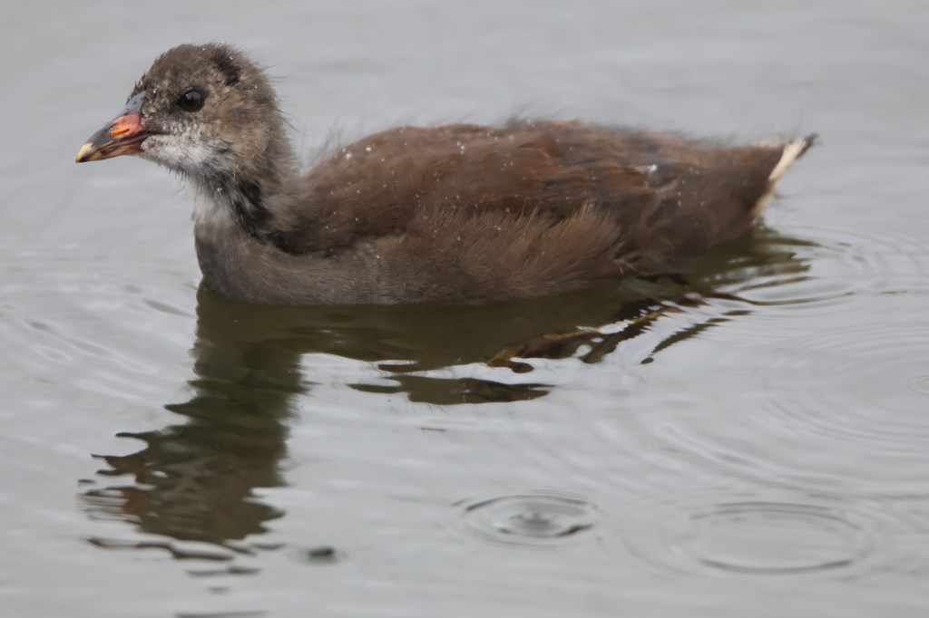 Yesterday we went to see what new life there was on Hogganfield Loch. It was a cold rainy afternoon but we got to see lots of youngsters there. Many were past the baby stage and growing fast. Here is a young moorhen.