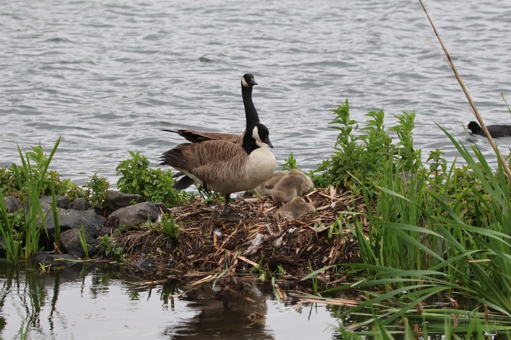 We were treated to a view of a Canada Goose family huddling together for warmth.