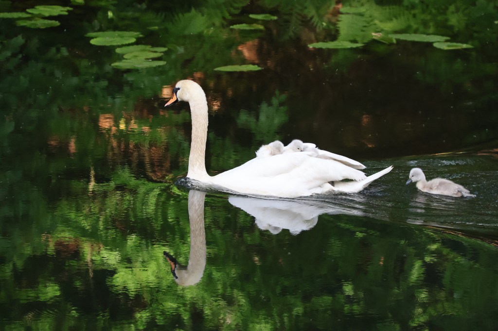 It was a beautiful sight to see them, especially with the marbled reflections of lush green foliage.